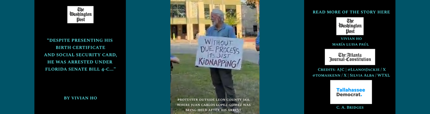 Juan Carlos Lopez-Gomez, a U.S. citizen born in Georgia, was arrested by Florida police in mid-April after being labeled an “unauthorized alien” while traveling to Florida for a construction job. He was held in jail for more than 30 hours because of an ICE detainer, even after his mom proved his citizenship in court. AJC’s Lautaro Grinspan spoke with Juan Carlos and his mother about the trauma of the arrest, the racial profiling they believe played a role, and the impact it’s had on their family and community. As they are still processing the arrest, mother and son have yet to cross the state line and return to Florida for work. Lopez-Gomez’s attorney, Mutaqee Akbar, said his client’s attempt to declare citizenship and provide documentation to the officer is exactly what he should have done during the encounter. Akbar also said he is discussing a possible wrongful arrest lawsuit. Credits: AJC | @LlanosJackie / X | @tomaskenn / X | Silvia Alba / WTXL