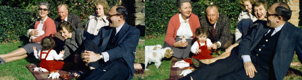 My Dad with his good friend, talking, relaxing for a moment in the RTR dining room. Circa 1960s.
